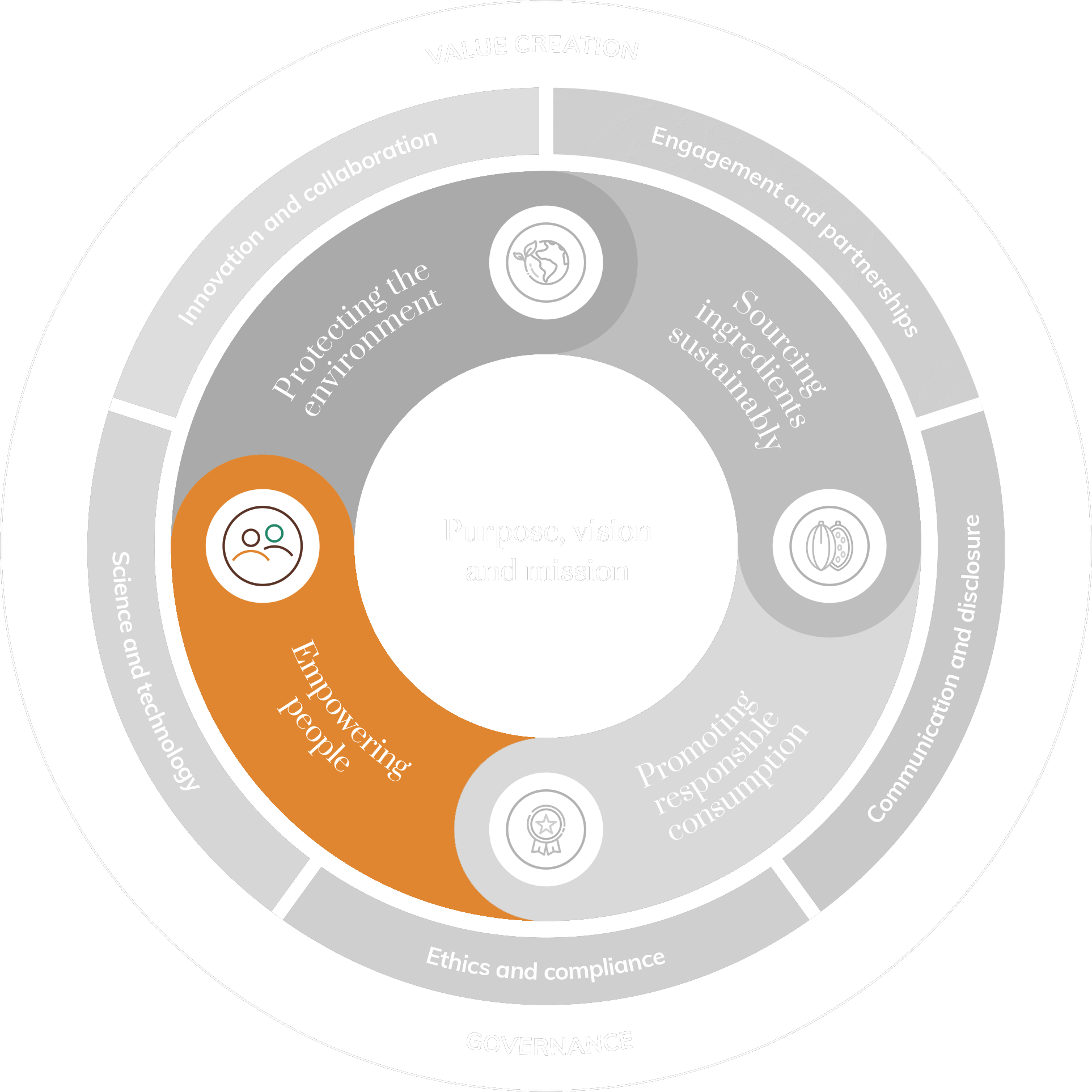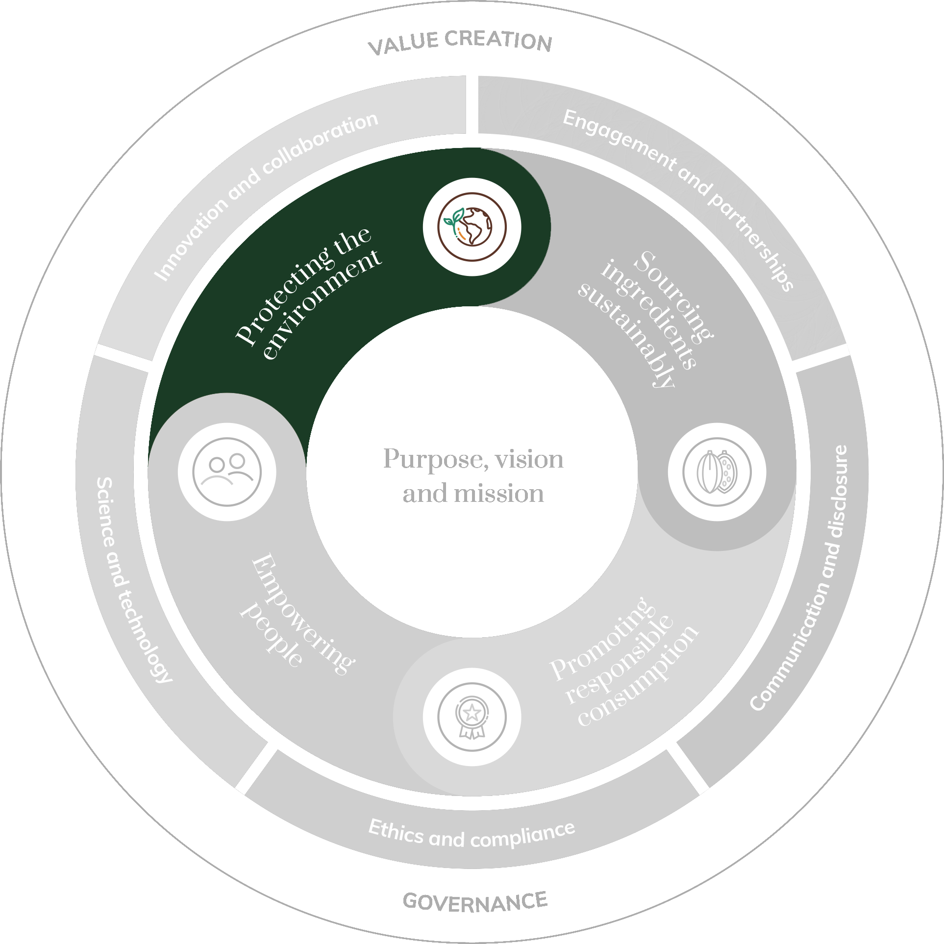 Our progress is rooted in our sustainability framework, focusing on four core sustainability pillars: protecting the environment, sourcing ingredients sustainably, promoting responsible consumption and empowering people. We make progress on these pillars by investing in innovation and technology, enhancing transparency and compliance, as well as fostering a culture of collaboration.